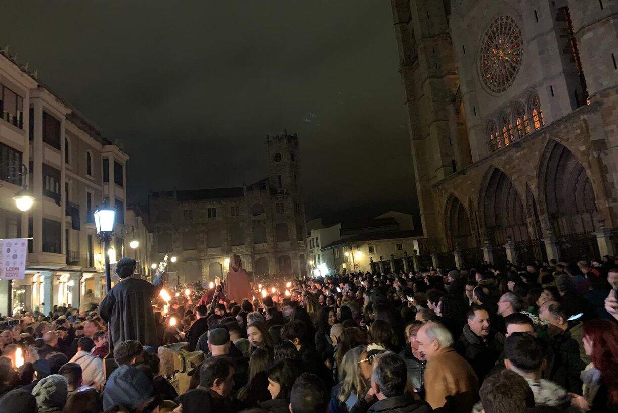 La noche del Jueves Santo en León se transforma en un verdadero fenómeno social capaz de congregar hasta 20.000 participantes que llenan el barrio Húmedo, la zona alrededor de la Catedral y la emblemática muralla medieval y sus cubos. Este evento se celebra dentro del marco de la Semana Santa leonesa, declarada de interés turístico internacional, y aporta un contrapunto irreverente a las celebraciones más tradicionales.