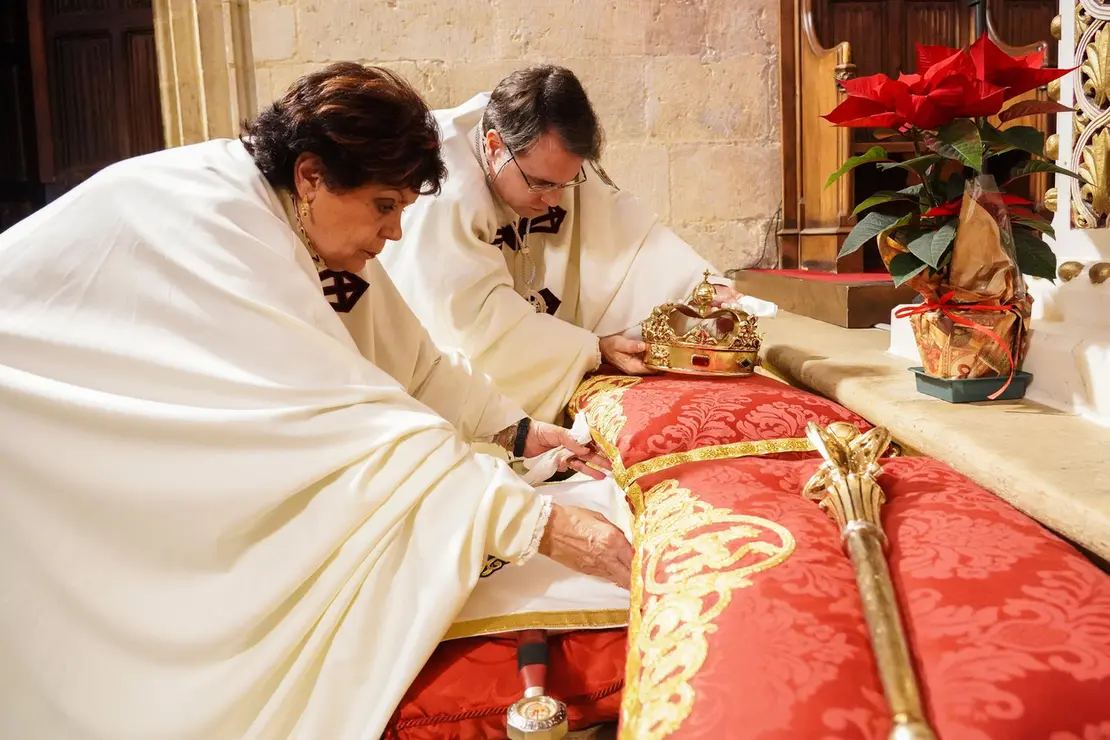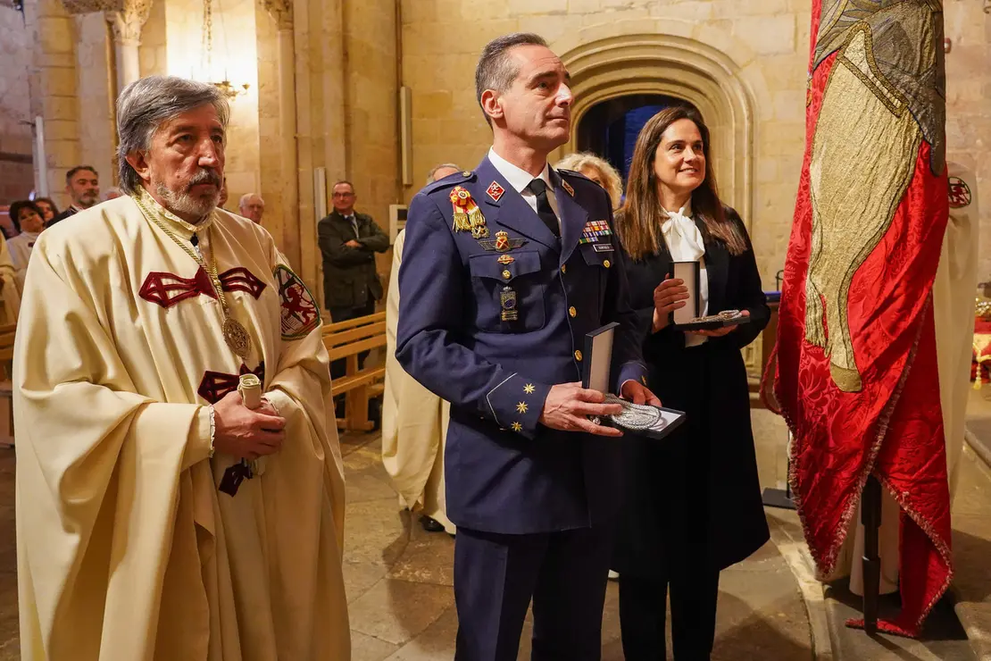 A su finalización, se procedió a la entrega del nombramiento honorífico de ilustre dama cofrade de honor a la presidenta de Diario de León, Adriana Uribarri, así como el de ilustre caballero cofrade de honor al coronel director de la Academia Básica del Aire y del Espacio, Ignacio de Dompablo Ferrándiz.