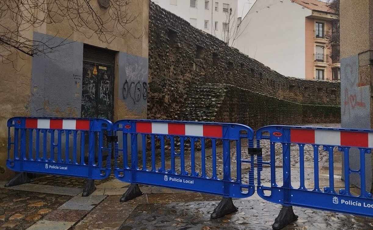 La Policía Local ha procedido al corte de la calle Las Cercas, en el tramo comprendido entre la Plaza de San Francisco y la calle Puerta Moneda, como medida preventiva tras el derrumbe de una pared de un edificio.