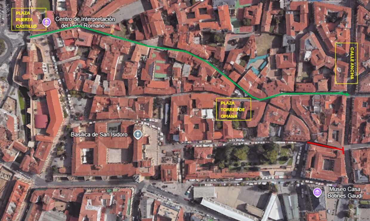 Debido a que el acceso habitual por la plaza de San Marcelo permanece cerrado por obras de reurbanización, se habilitará un itinerario alternativo. Durante el tiempo que dure la intervención, la calle Cervantes invertirá su sentido de circulación para permitir el acceso a la calle Ancha.