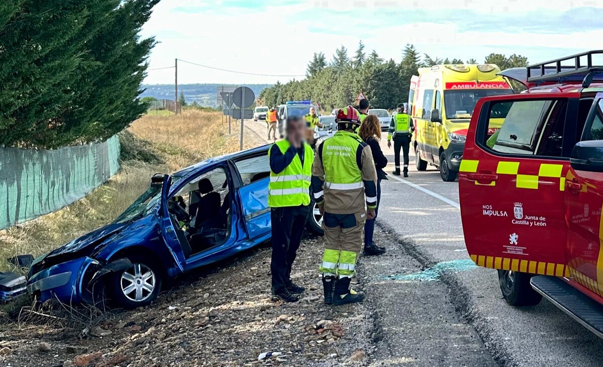 Bomberos de León interviene en la salida de un vehículo en la Nacional 630.