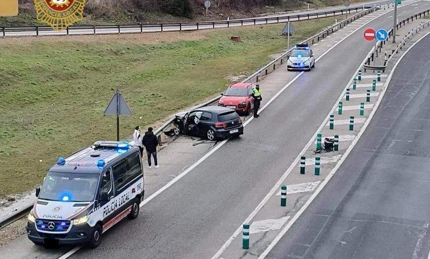 Agentes de la Policía Local de León detuvieron en la mañana de este sábado a un conductor tras verse implicado en un siniestro vial en un acceso de la carretera de Asturias hacia la LE-20. Según la información policial, difundida a través de sus redes sociales, el vehículo sufrió una salida de vía en los ramales de incorporación. En ese incidente, el turismo terminó golpeando los quitamiedos situados en la mediana.