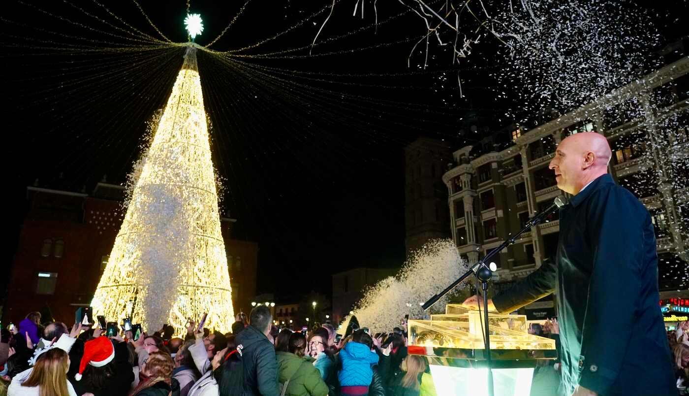 El alcalde de León, José Antonio Diez, participa en el acto del encendido de la iluminación navideña de la ciudad durante las últimas navidades. Foto: Campillo