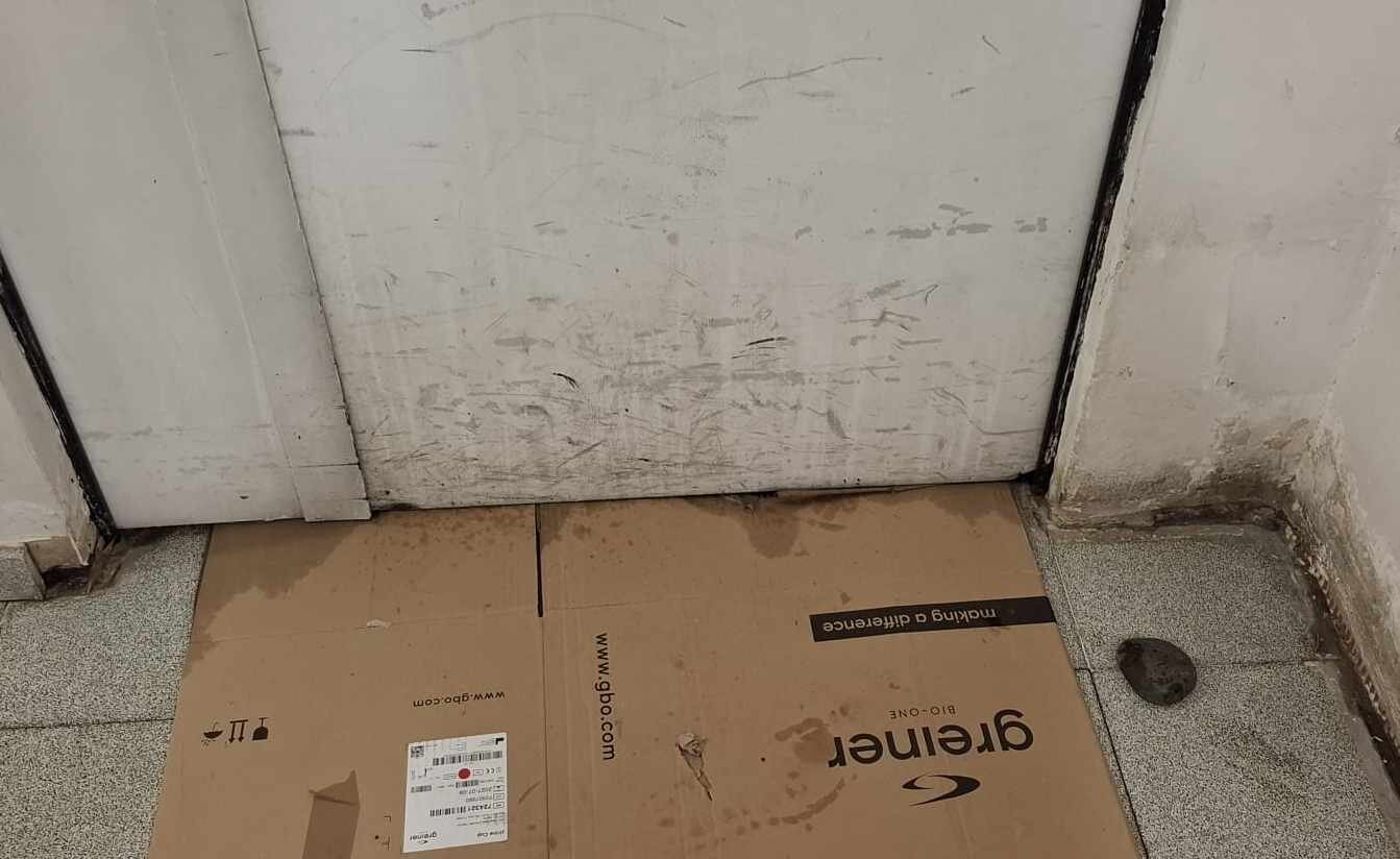 Cartones para evitar que el agua se cuele en el interior del recinto sanitario, en el prolifera el moho y la humedad.