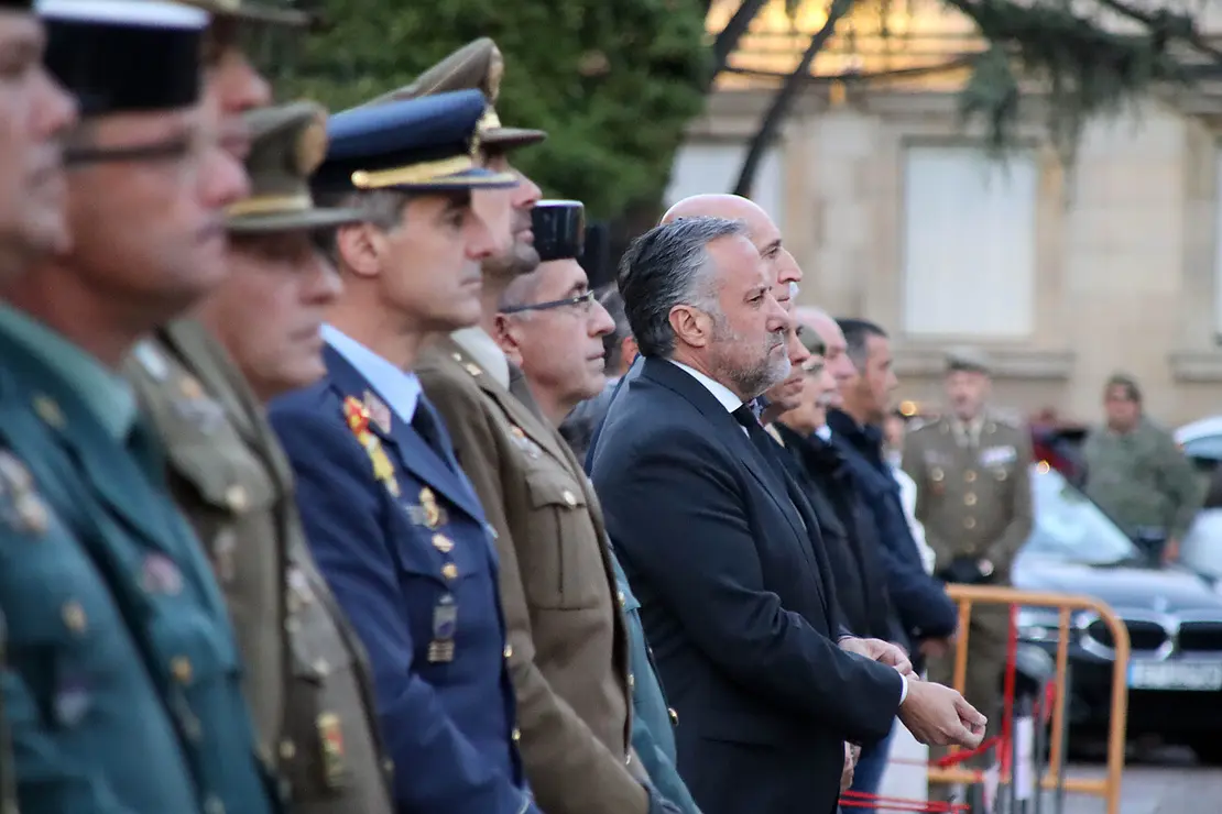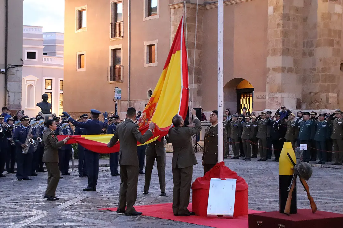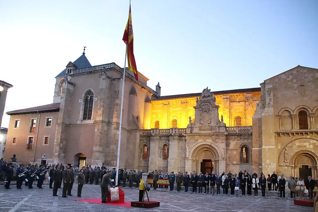 León acoge un arriado de bandera y retreta militar en vísperas del Día de la Fiesta Nacional