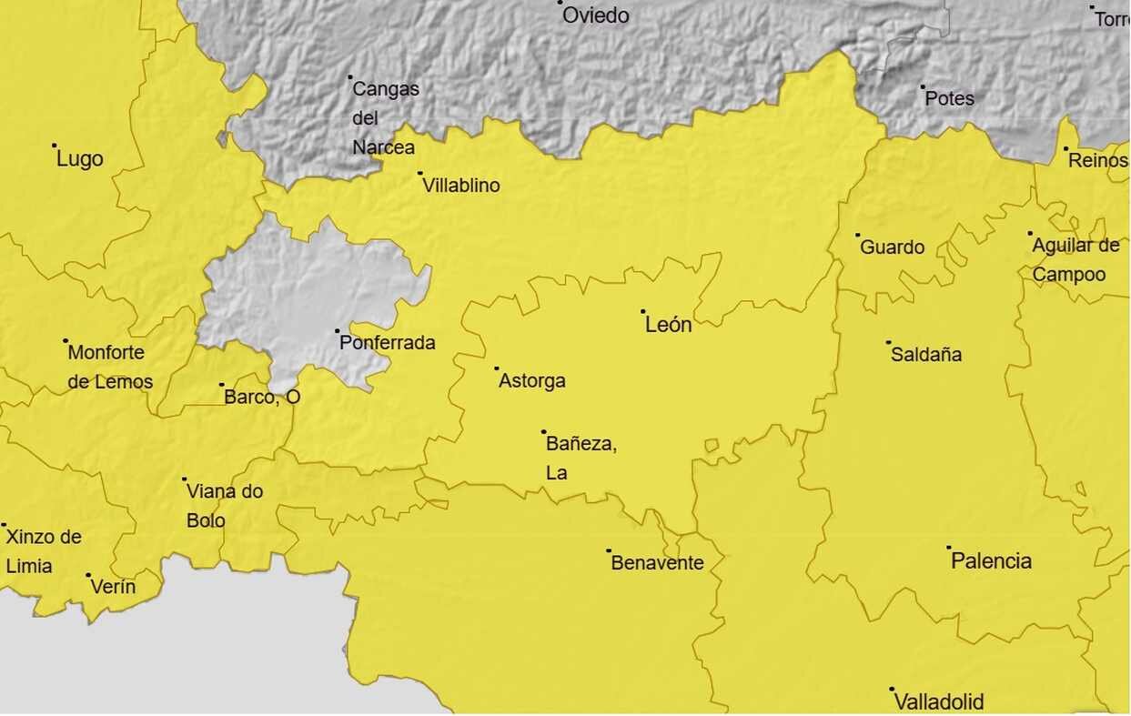 Imagen de la alerta amarilla en la provincia de León. Foto: Aemet