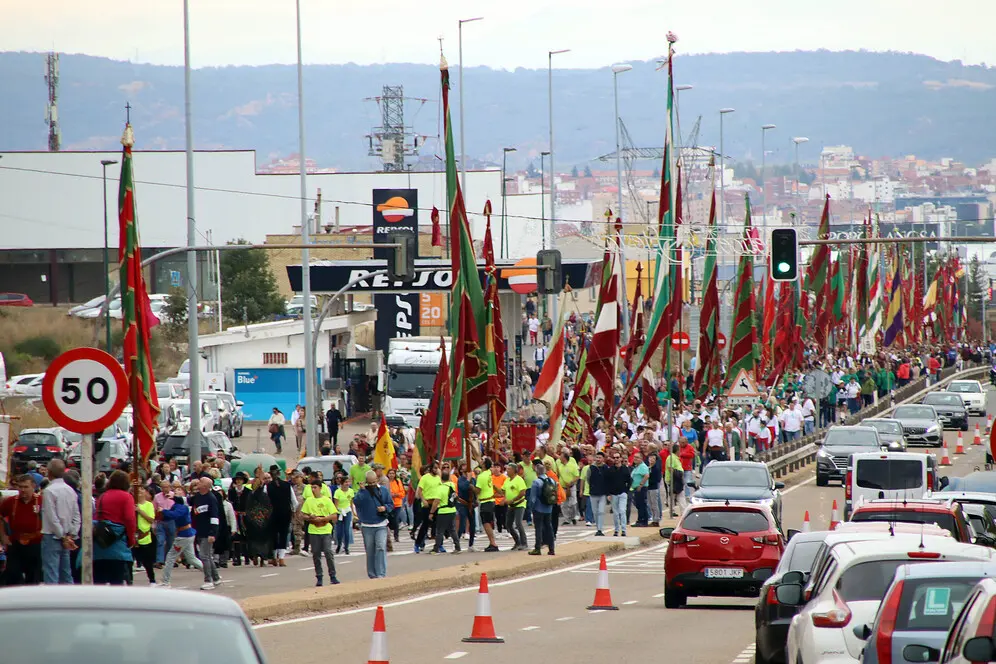 El entorno del santuario de La Virgen del Camino recibió desde primera hora de este sábado a los miles de romeros que un año más cumplieron la tradición para honrar a San Froilán, patrono de la Diócesis de León, en la festividad más tradicional de la ciudad, que contagia también a toda la provincia, con la participación de pendones y carros engalanados procedentes de diversas comarcas, que protagonizan una vistosa peregrinación.