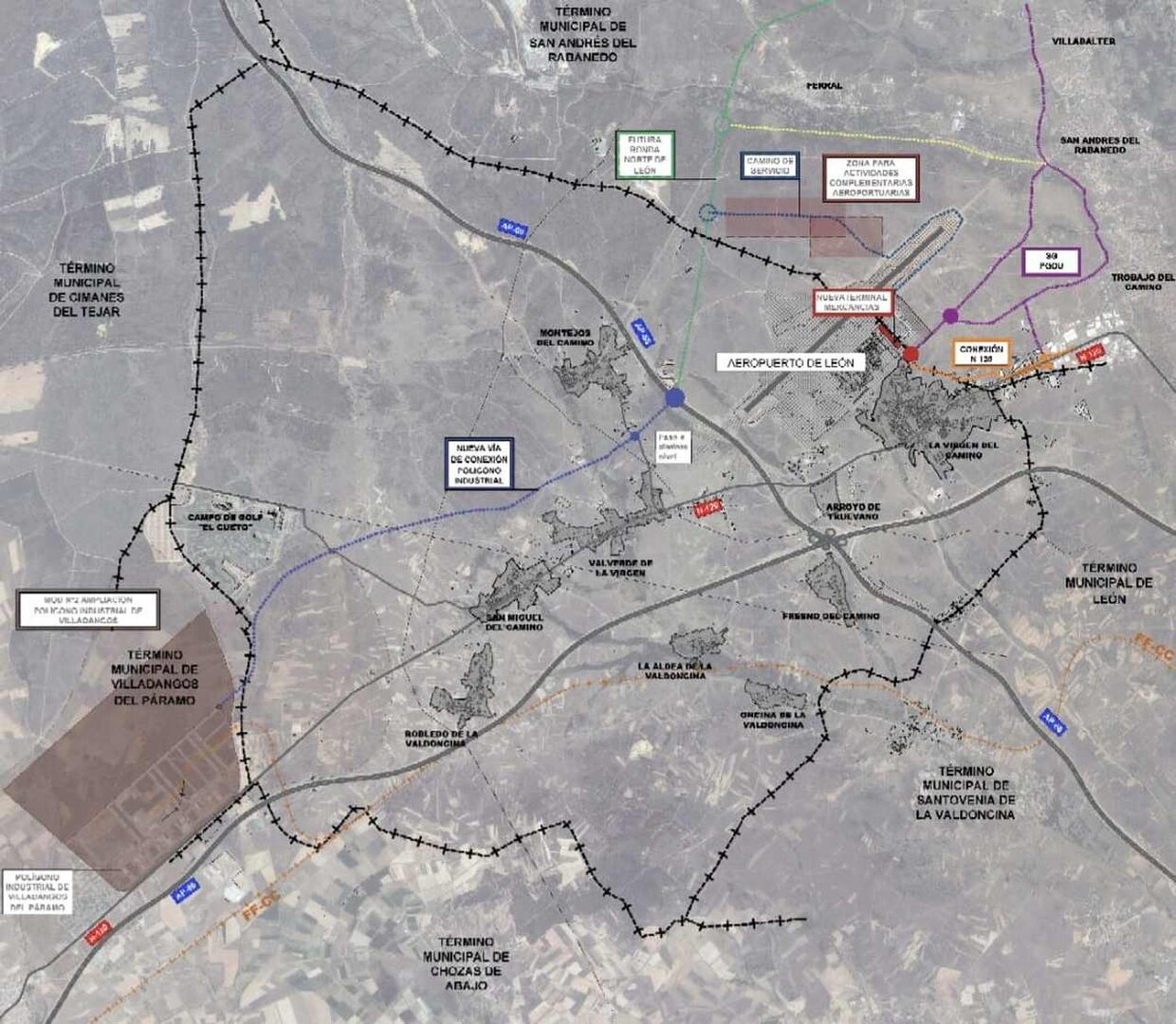 Según explicó, el documento municipal ya contempla posibles enlaces con la futura ronda norte de León y con el polígono de Villadangos del Páramo, lo que permitiría abrir hasta 120 hectáreas de suelo para actividades industriales y aeroportuarias.