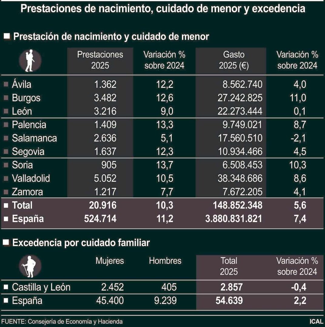 Los datos reflejan que León mantiene un peso destacado dentro de la Comunidad tanto en número de prestaciones como en inversión, en un contexto de mejora de los derechos de conciliación y cuidado familiar.