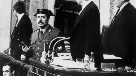 El 23 de febrero de 1981 quedó grabado en la memoria colectiva por la irrupción armada en el Congreso durante la investidura de Leopoldo Calvo-Sotelo. Aquella tarde, el teniente coronel Antonio Tejero encabezó la entrada de guardias civiles en el hemiciclo mientras en Valencia el capitán general Jaime Milans del Bosch desplegaba tanques en la calle. La intervención televisada del rey Juan Carlos I acabó desactivando la asonada.