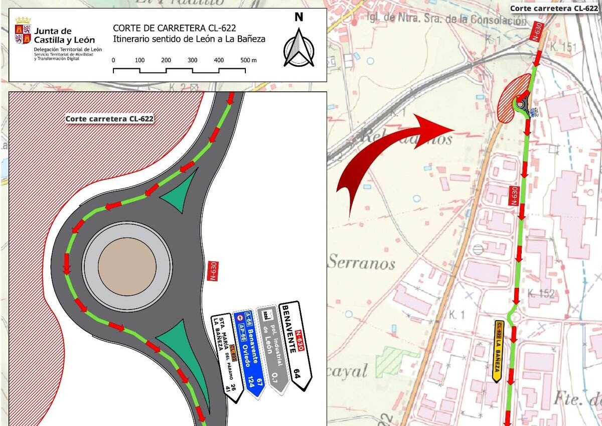Paralelamente, se cerrará la carretera CL-622 entre su intersección con la N-630 y Ribaseca, desviando el tráfico por la N-630. Este esquema de circulación provisional permanecerá activo hasta la finalización completa de las obras, prevista para las próximas semanas.