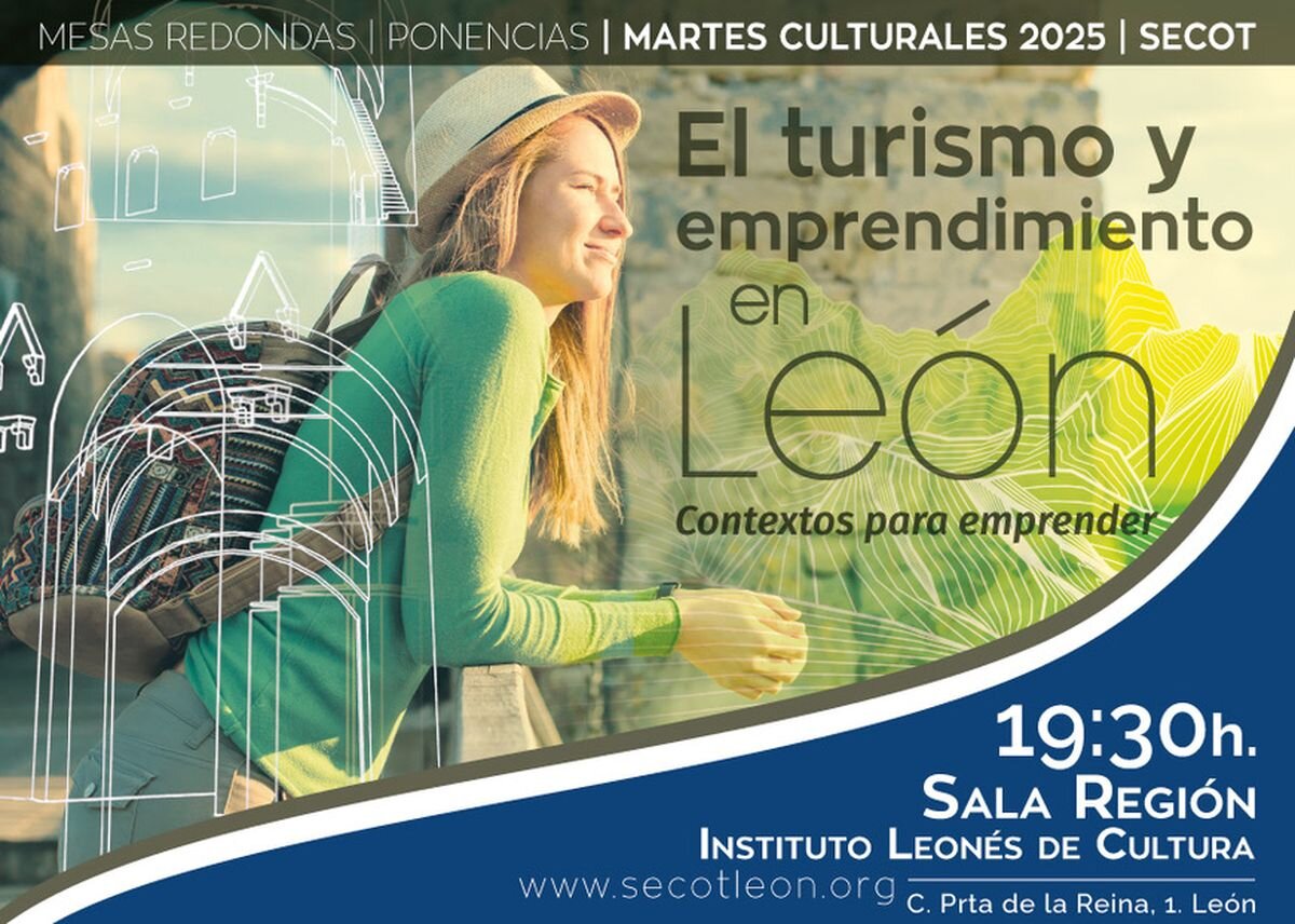 La mesa redonda, que se celebrará el día 18 sobre agroturismo y enoturismo, es la tercera actividad de los Martes Culturales de SECOT León, tras las sesiones dedicadas al ‘Turismo de naturaleza, activo y deportivo’ y al ‘Turismo cultural y peregrino’. Este proyecto de divulgación de SECOT León finalizará el martes 25 de febrero con la ponencia ‘Turismo y Emprendimiento en León’.