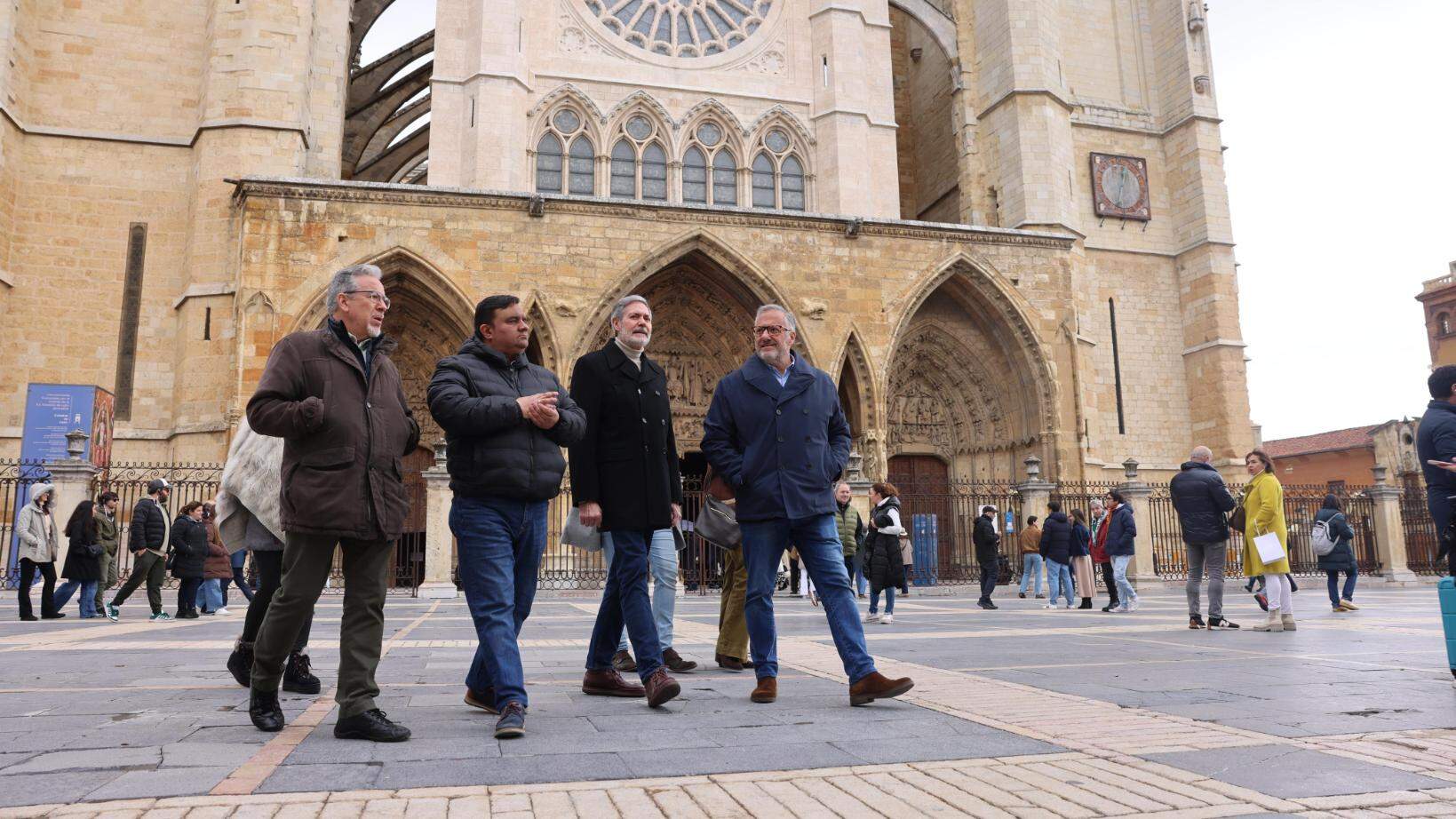El candidato de Vox a la presidencia de la Junta, Carlos Pollán, pasea por León junto a sus amigos durante la jornada de reflexión.