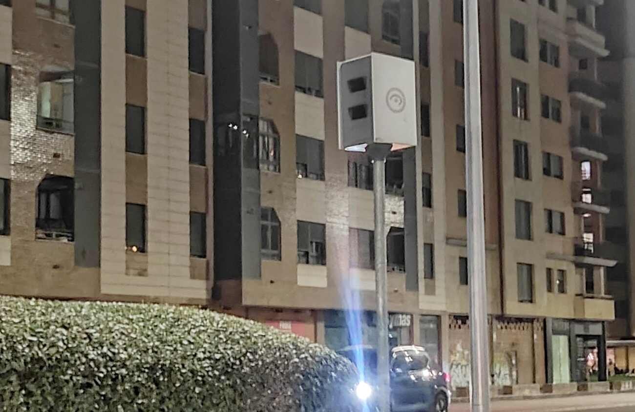 La carcasa del radar que estuvo operativa en la prolongación de Padre Isla, frente al centro deportivo de Eras de Renueva, ha reaparecido desde hace dos días en la avenida Universidad, a la altura del cruce con la calle Encinar, muy cerca del polígono industrial de La Torre.