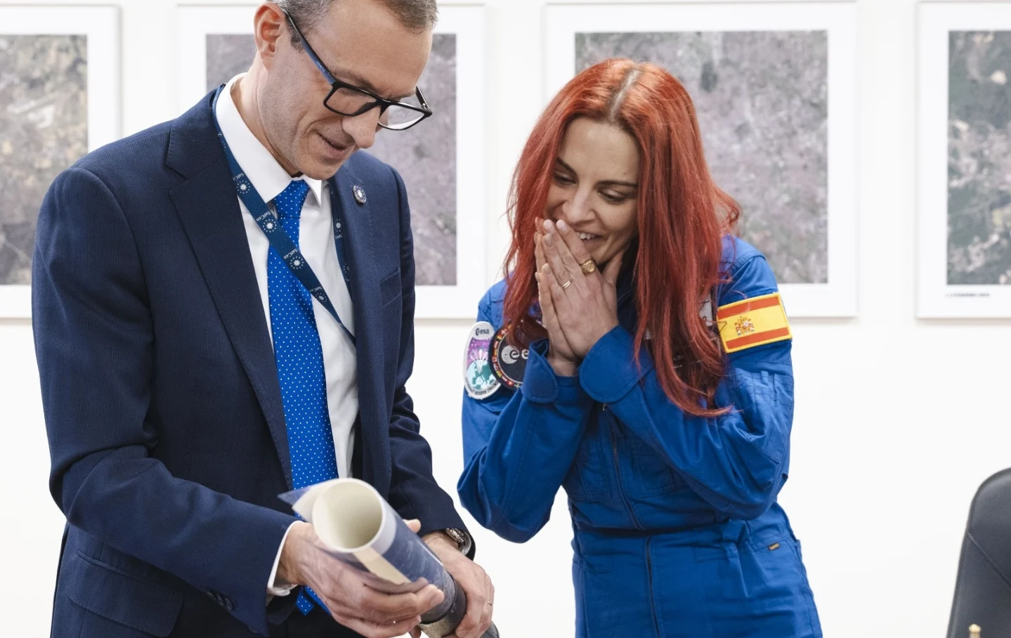 “Esta es la cara que se le queda a una leonesa de pro cuando el director del Centro de Satélites de la Unión Europea (SatCen), Louis Tillier, le regala una imagen satelital de su ciudad”, escribió la astronauta en la publicación mientras se deja ver sorprendida por el regalo.