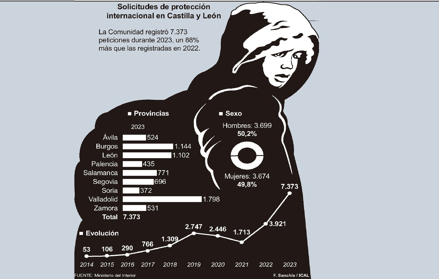 La provincia de León registró el pasado año más de 1.100 solicitudes de protección internacional. El notable incremento se encuentra en paralelo a las solicitudes registradas en la Comunidad donde el pasado año un total de 7.373 solicitudes de protección internacional, un 88 por ciento más que en 2022, cuando se alcanzaron las 3.921, y la cifra más alta de toda la serie histórica.