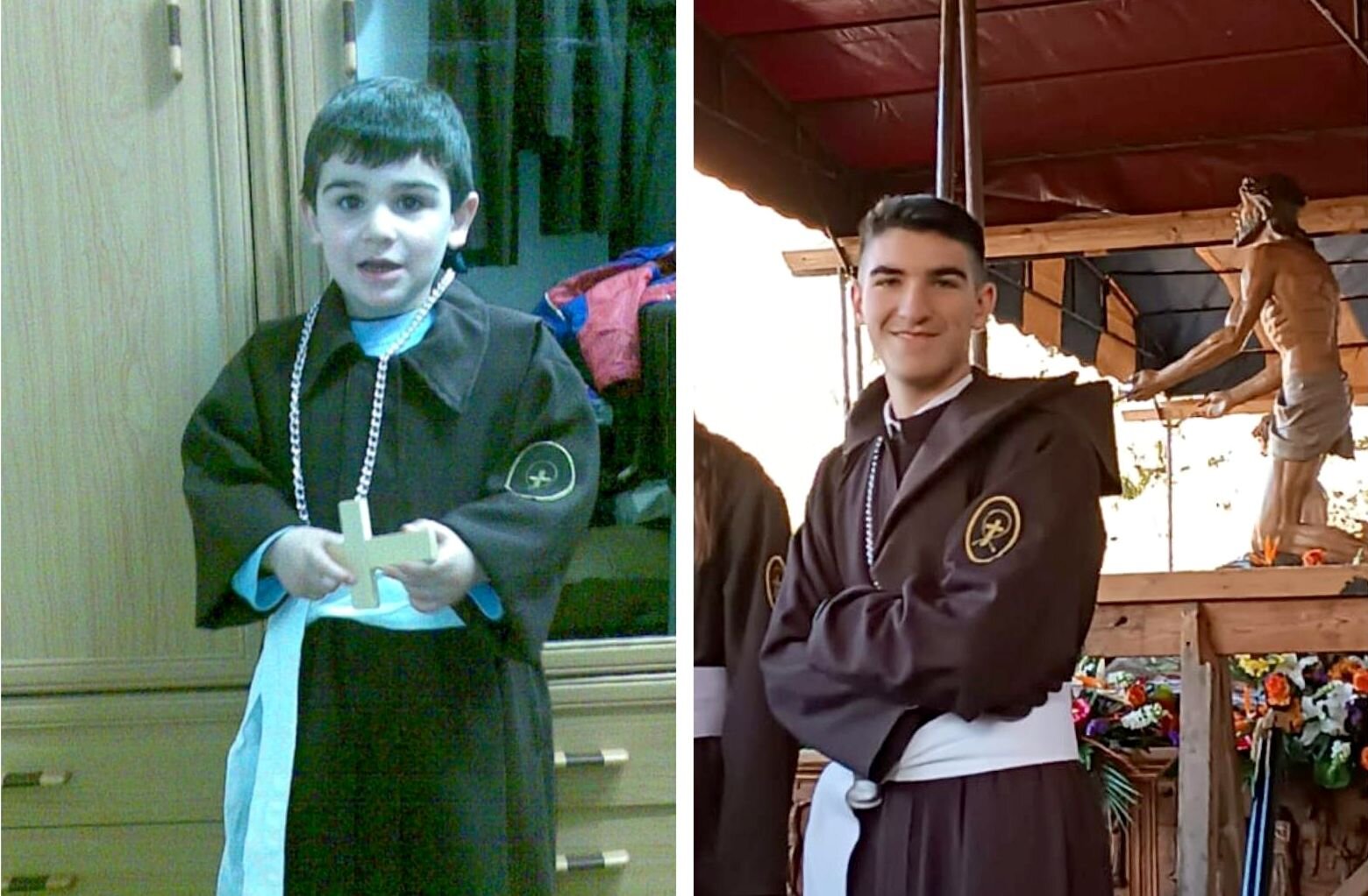 Desde pequeños, Mario y su hermano César se unieron a la cofradía, saliendo en las filas con sus farolillos. "Salí por primera vez con nueve meses, al igual que mi hermano César", recuerda. Hoy, a sus 16 años, Mario y su familia siguen formando parte de la hermandad: él como bracero en el paso de 'El Cristo de la Esperanza' y su madre portando a 'La Madre de la Paz'. La tradición continúa viva en la familia Prada Bernal.