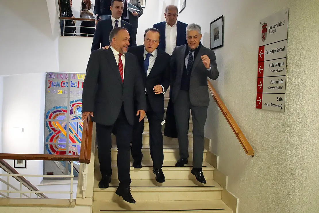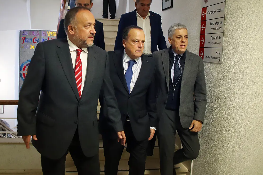 Amilivia estuvo acompañado, en una iniciativa promovida por el Consejo de Cuentas y la Universidad, por el vicerrector de Transformación Digital, Ramón Ángel Fernández, y también asistieron el delegado territorial de la Junta, Eduardo Diego, y el presidente de la Diputación, Gerardo Álvarez Courel, quien comentó que la institución está “muy comprometida” con la ciberseguridad y tiene previsto invertir cuatro millones en los distintos programas que atañen a la materia, subvencionados con 1,6 millones con fondos europeos, “para que los alcaldes y alcaldesas no se sientan desamparados ante ciberataques”.