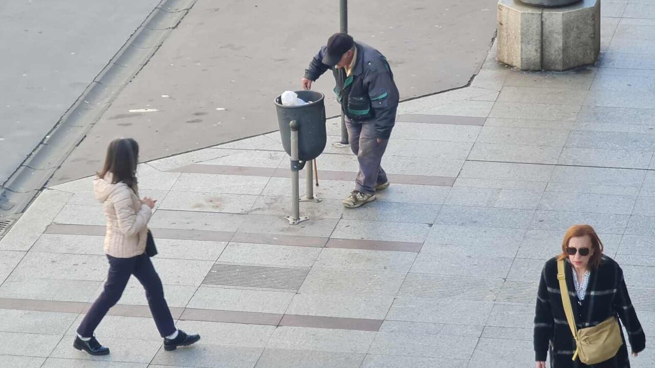 Un hombre se dispone a arrojar residuos en una papelera en Ordoño II.