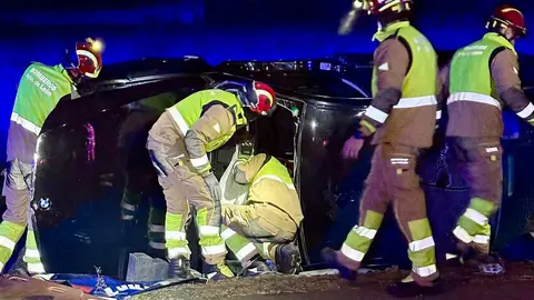 El aparatoso accidente de un furgón tuvo lugar tras una salida de vía sobre las 14:00 horas.