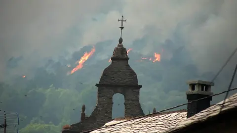Por su parte, el fuego de Anllares avanza con un frente compacto hacia Asturias, aunque por el momento mantiene alejado el peligro de Valdeprado.