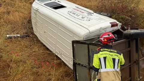 Por la mañana, una furgoneta se salió de la vía y volcó en el kilómetro 22 de la carretera LE-114, en Alija del Infantado. El conductor, un hombre de unos 60 años, resultó herido leve y fue atendido por personal sanitario. Aunque inicialmente se solicitó la presencia de los bomberos, finalmente no fue necesaria su intervención.