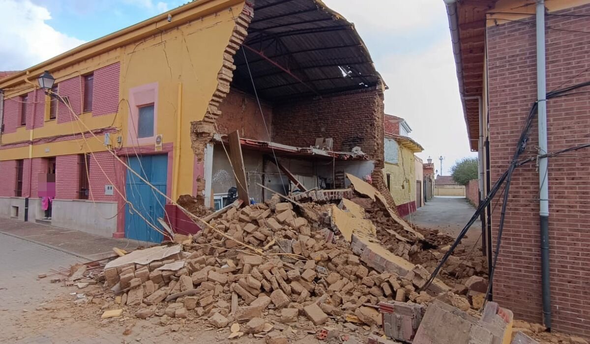 Derrumbe de una fachada de una vivienda en Mansilla de las Mulas. Foto: Ayuntamiento de Mansilla de las Mulas.