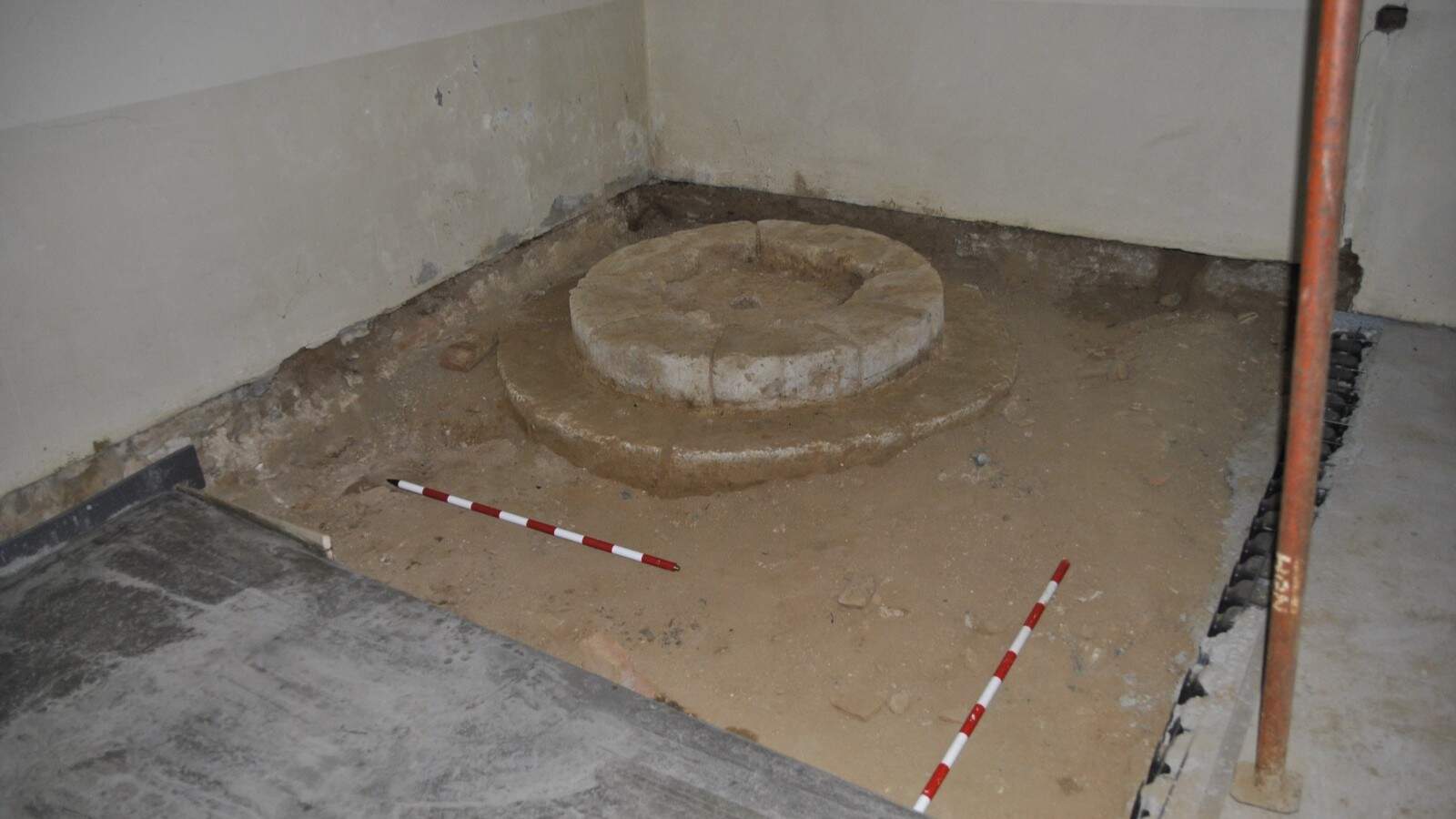 Los arqueólogos documentaron una estructura pétrea de forma oval en piedra caliza, compuesta por varios escalones circulares. En el centro apareció una cámara subterránea de unos 70 centímetros de profundidad y un sistema de evacuación de aguas. Estas características han permitido identificarla como “la base de una pila bautismal o baptisterio”, según los especialistas.