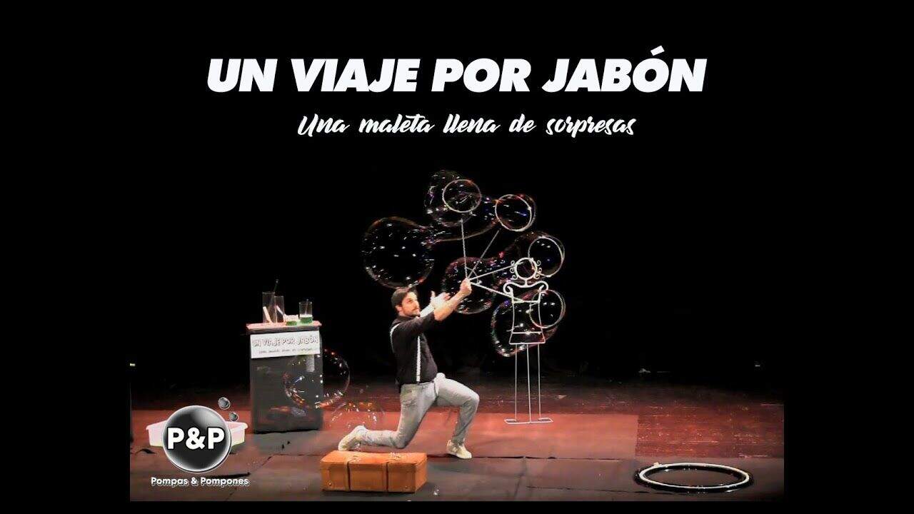 ‘Un viaje por jabón. Una maleta llena de sorpresas’, con una duración de 50 minutos, es un espectáculo de jabón único y original. Juan ha viajado por medio mundo en busca del lugar ideal para hacer burbujas. Lejos de encontrarlo, cada sitio le enseño una manera diferente de jugar las pompas. Cafeteras, percheros, raquetas, que se convierten en pomperos, toques de humor y una gran participación del público, hacen una combinación infalible.