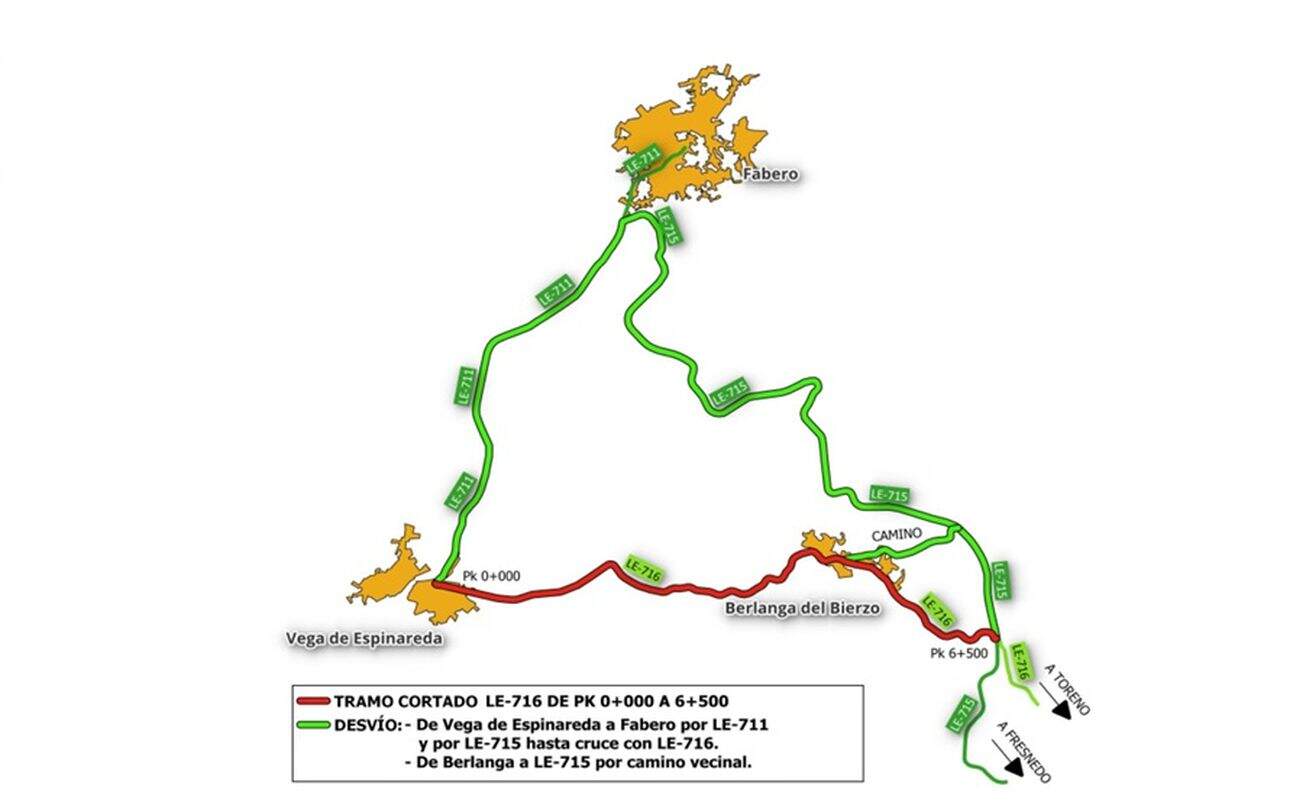 Para resolver las necesidades del tráfico, se proponen los desvíos alternativos debidamente señalizados por las carreteras LE-711, LE-715 y el camino vecinal de Berlanga del Bierzo a LE-715.