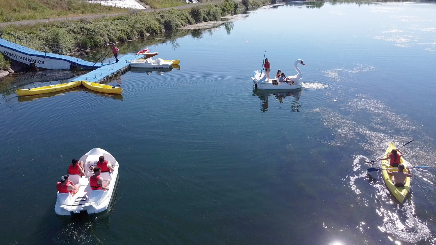 El Lago de Sahechores no solo es perfecto para el relax: también es un destino multiaventura ideal para familias, parejas o grupos de amigos. Durante el verano se pueden alquilar canoas, hidropedales en forma de cisne, tablas de paddle surf o bicicletas acuáticas, para explorar el lago a tu ritmo.