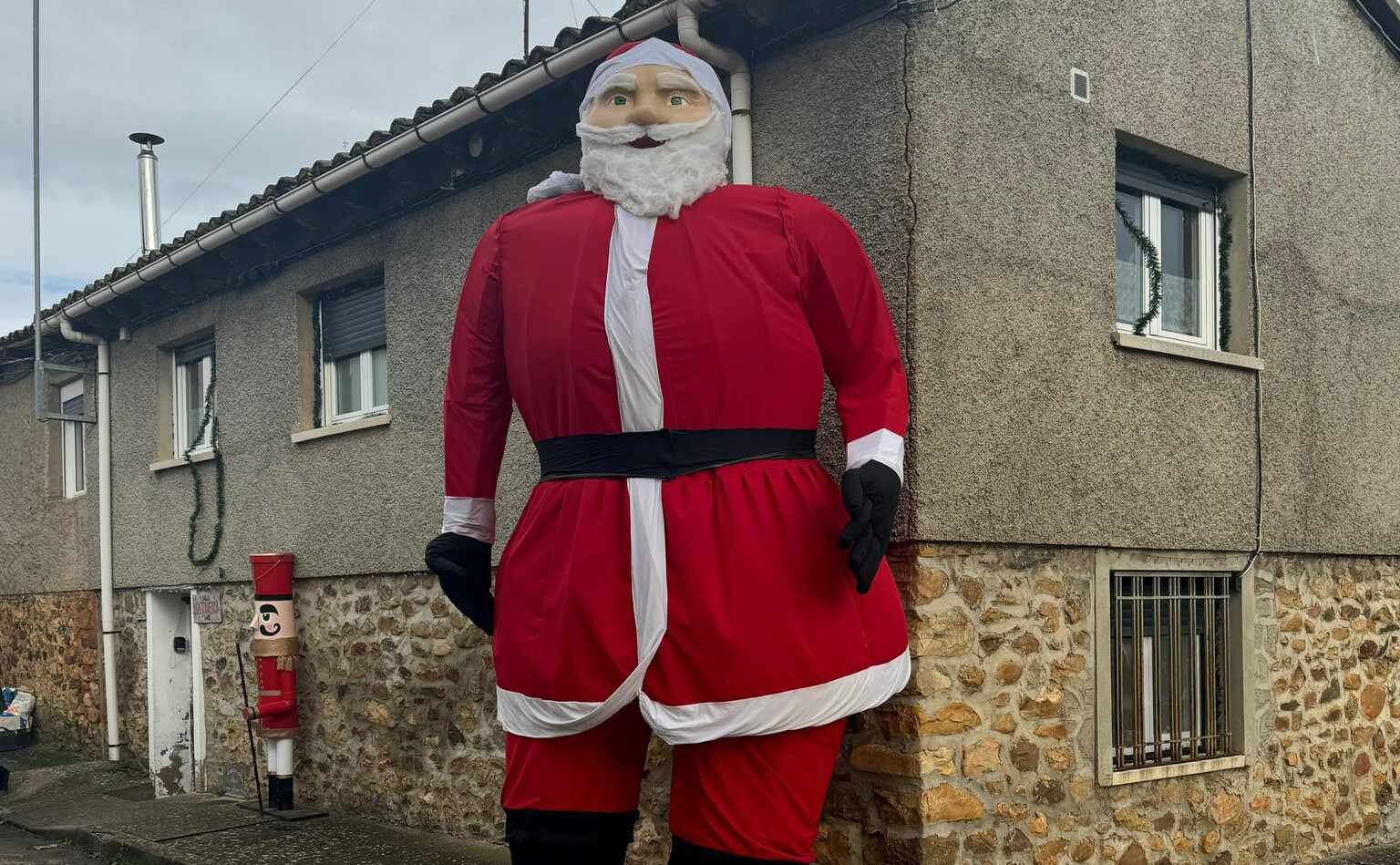A su ya conocido y fotografiado muñeco de nieve, el pueblo ha añadido una nueva y llamativa figura: un Papa Noel gigante que no pasa desapercibido para vecinos y visitantes.