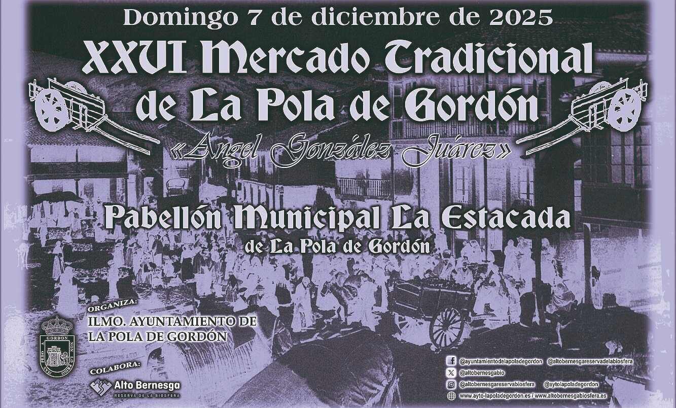 La Pola de Gordón celebrará este domingo 7 de diciembre la vigesimosexta edición del Mercado Tradicional 'Ángel González Juárez', incluido en el calendario oficial de ferias comerciales de Castilla y León. El evento recuerda a los antiguos mercaderes de la montaña leonesa y de territorios como Asturias, Galicia y Cantabria, que a comienzos del siglo XX acudían a la zona para ofrecer sus productos artesanales y agroalimentarios.