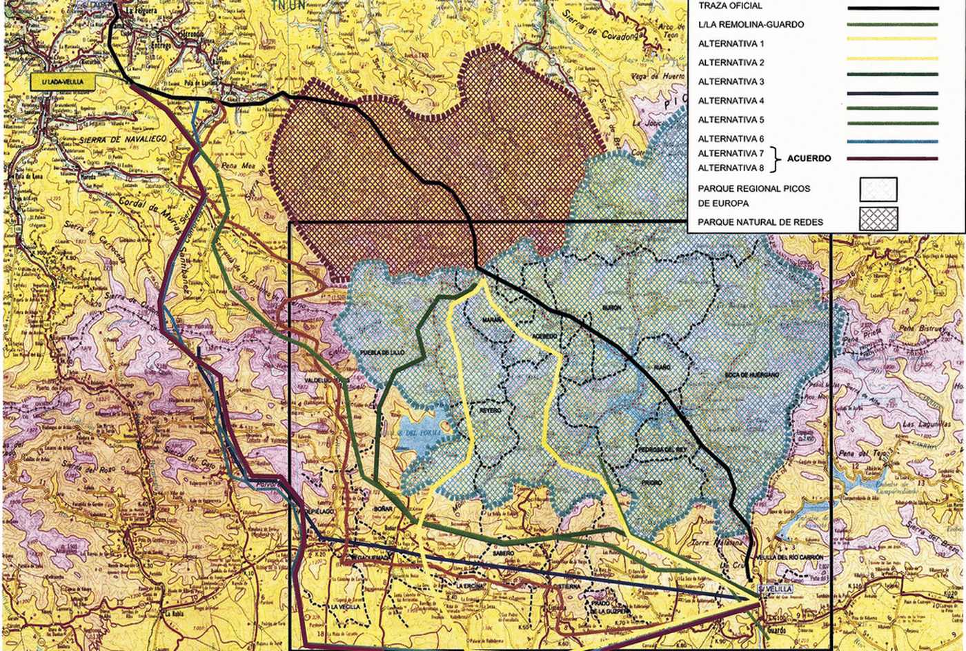 Desde su diseño inicial Asturias, León y Palencia se manifestaron en contra del proyecto de Red Eléctrica de España de construir una línea de alta tensión entre los municipios de Langreo (Asturias) y Velilla del Río Carrión (Palencia) atravesando la Cordillera Cantábrica.