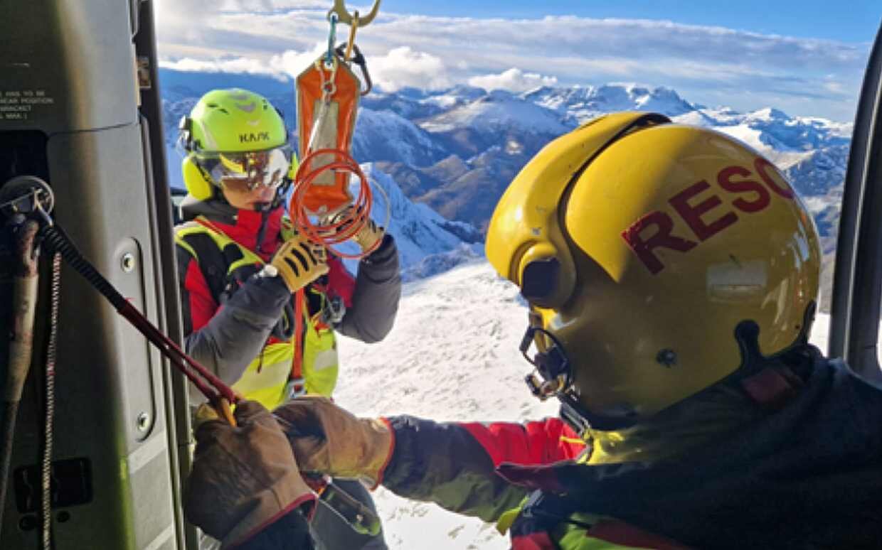 Una vez en la zona del accidente, el helicóptero realizó una maniobra en estacionario para facilitar el descenso de los rescatadores mediante grúa.