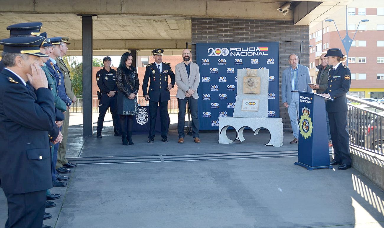 El acto homenaje en el que se ha procedido a colocar el monolito símbolo de fortaleza de la Policía Nacional, ha tenido lugar en la Puerta de la Comisaría Local de San Andrés del Rabanedo.