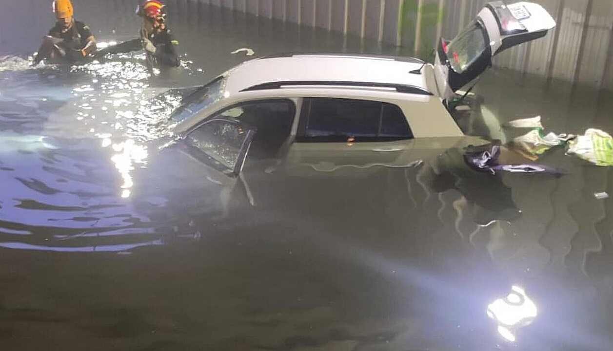 Rescatada una joven atrapada en su coche anegado en el paso subterráneo de Trobajo