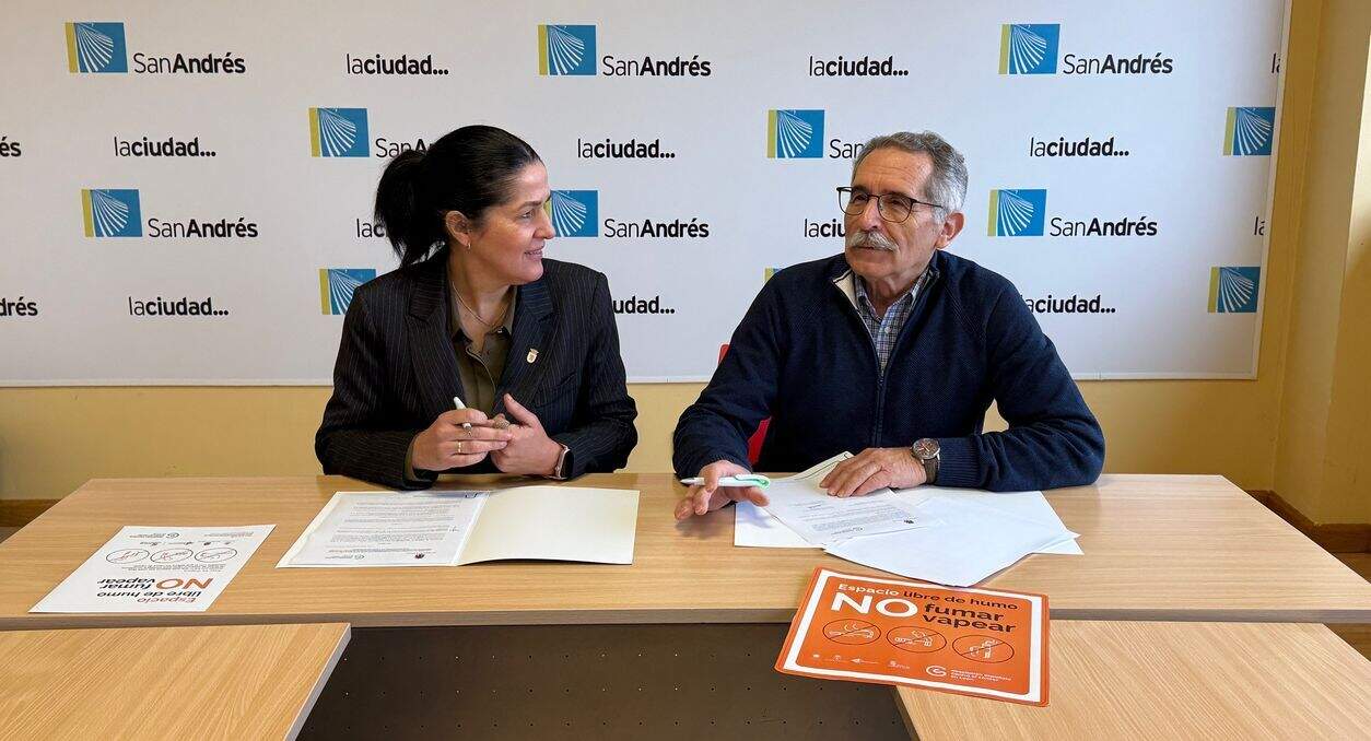 La alcaldesa de San Andrés del Rabanedo, Ana Caurel, y el presidente provincial de la Asociación Española Contra el Cáncer, Estanislao de Luis Calabuig, han renovado este lunes el convenio de colaboración para continuar desarrollando el programa “Espacios Sin Humo”, ampliando esta iniciativa preventiva a más parques y zonas verdes, marquesinas de autobús y todas las instalaciones deportivas al aire libre del municipio.