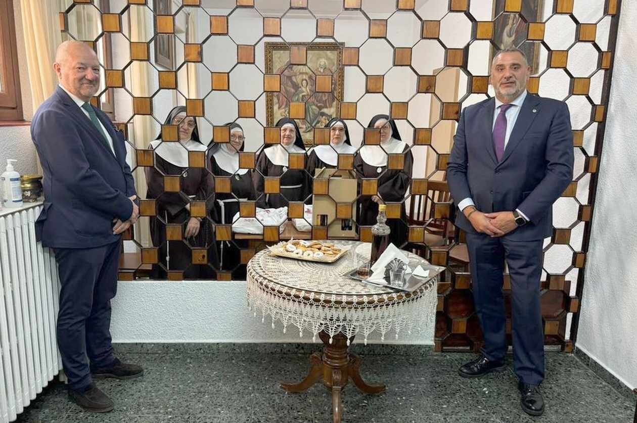 Como manda la tradición la Cofradía del Dulce Nombre de Jesús Nazareno de León cumplió este sábado con la costumbre de visitar a las Hermanas Clarisas Descalzas en el Convento de la Santa Cruz. En representación de la hermandad acudieron el abad, el secretario y el abad entrante, en un gesto de cercanía que precede siempre al relevo en el cargo más alto de la cofradía.