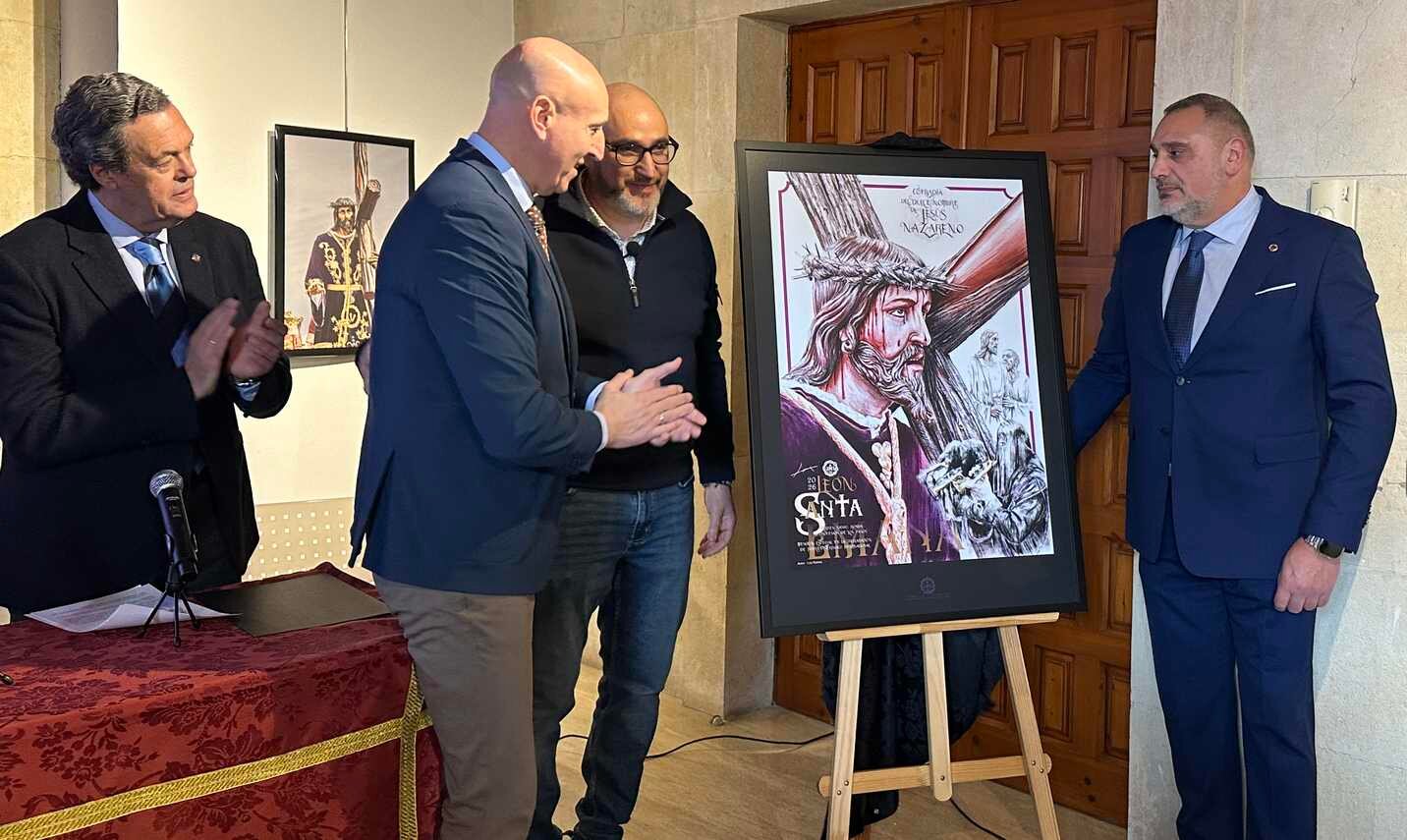 La Cofradía del Dulce Nombre de Jesús Nazareno presentó este miércoles el cartel anunciador de la Semana Santa 2026, una creación del artista leonés Luis Miguel Robles García, concebida expresamente para representar la esencia histórica, devocional y estética de la Hermandad.