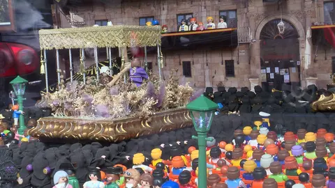 A pocas jornadas de que la ciudad vuelva a sumergirse en la celebración de la Semana Santa de León, uno de los escaparates más fotografiados del centro de la ciudad ya vuelve a captar la atención de vecinos y visitantes. La tienda Festones, en el entorno de La Inmaculada, ha vuelto a llenar su vitrina con una escena a escala protagonizada por figuras de Playmobil que recrean algunos de los momentos más reconocibles de la tradición pasional leonesa.