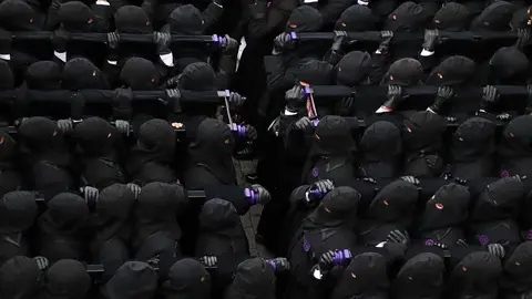 Los hermanos de la Cofradía del Dulce Nombre de Jesús Nazareno, ataviados con sus túnicas negras, se agolpaban a las puertas de la Capilla de Santa Nonia, en la capital leonesa, bajo una incesante lluvia. A las 7.15 horas tomó la palabra Nacho Tejera, el abad, para informar que la decisión sobre la salida o no de la Procesión se postergaría hasta media hora después, cuando ya se haría de forma definitiva.