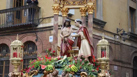 “No puede haber una prueba de amor más extrema y más grande que la de un Dios amortajado y envuelto en una sábana tras padecer una muerte de cruz tan humillante”, comentó el preceptivo pregón, en el que se explicó que “a Dios no le agradó la muerte por lo que padeció, sino por el amor con el que la vivió”. “Venga, María, vamos, que ese es el amor al que tú siempre nos quieres acercar desde tu maternal y dulce regazo”, se animó a la Dolorosa”, que comenzó a caminar hasta su encuentro con San Juan.