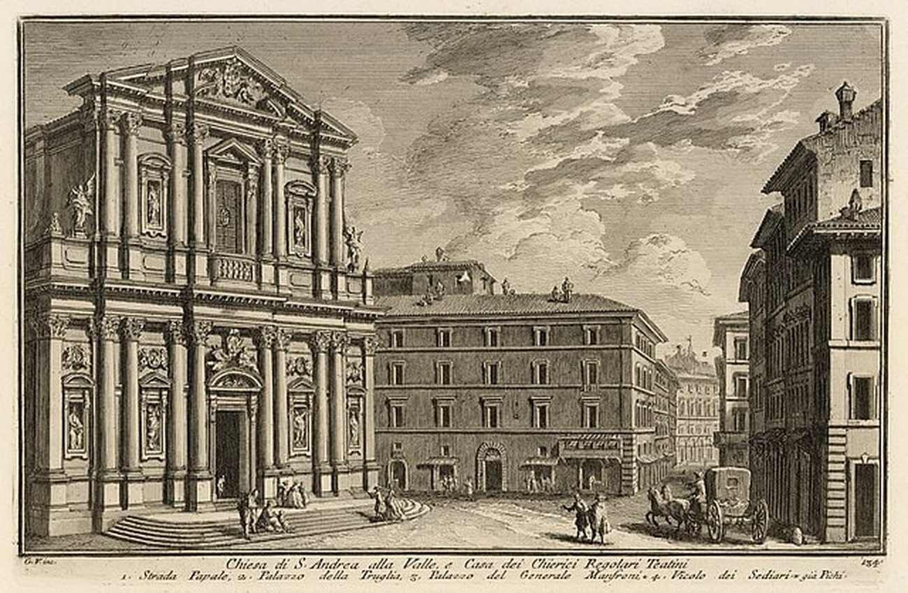 Los teatinos tienen precisamente su casa madre en la basílica menor de Sant´Andrea della Valle, dedicada al apóstol san Andrés, una construcción barroca que se inició en la última década del siglo XVI y no se consagró hasta 1650 cuando aún no se había levantado la preciosa fachada que hoy deslumbra a los visitantes. La iglesia se levantó donde había estado el palacio Piccolomini, que Constanza Piccolomini, duquesa de Amalfi, dejó en herencia a los teatinos expresamente para ello.