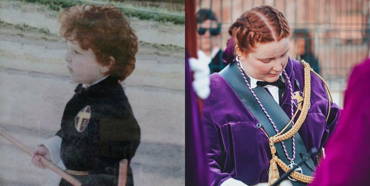 Los primeros recuerdos de la infancia de Sheila Martínez son con la túnica de color púrpura de la Cofradía de las Tres Caídas de Jesús Nazareno puesta sobre ella, una hermandad que siempre ha estado y va a estar grabada en su memoria