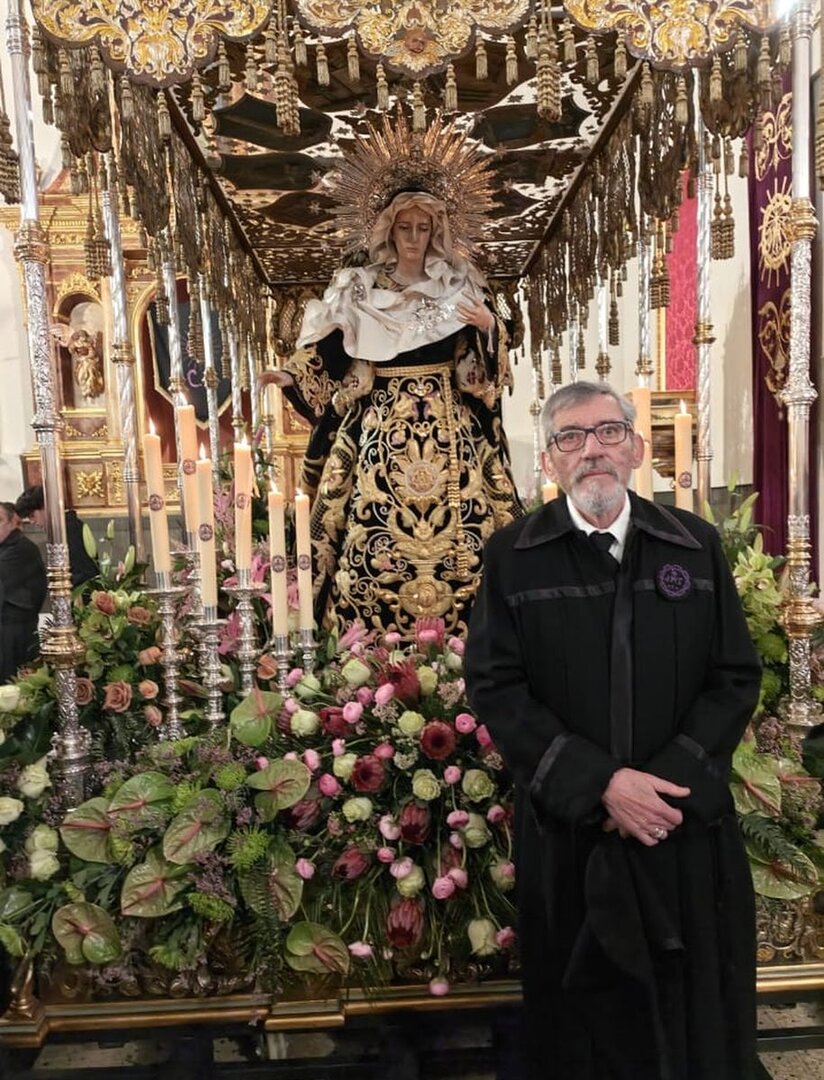 De sus inicios como cofrade, explica que fue precisamente viendo fotos antiguas, en las que su familia ya vivía activamente la Semana Santa de la ciudad, cuando empezó a vivirla en sus propias carnes y “por fin con 17 años entré en el paso de la Dolorosa”, asegura.