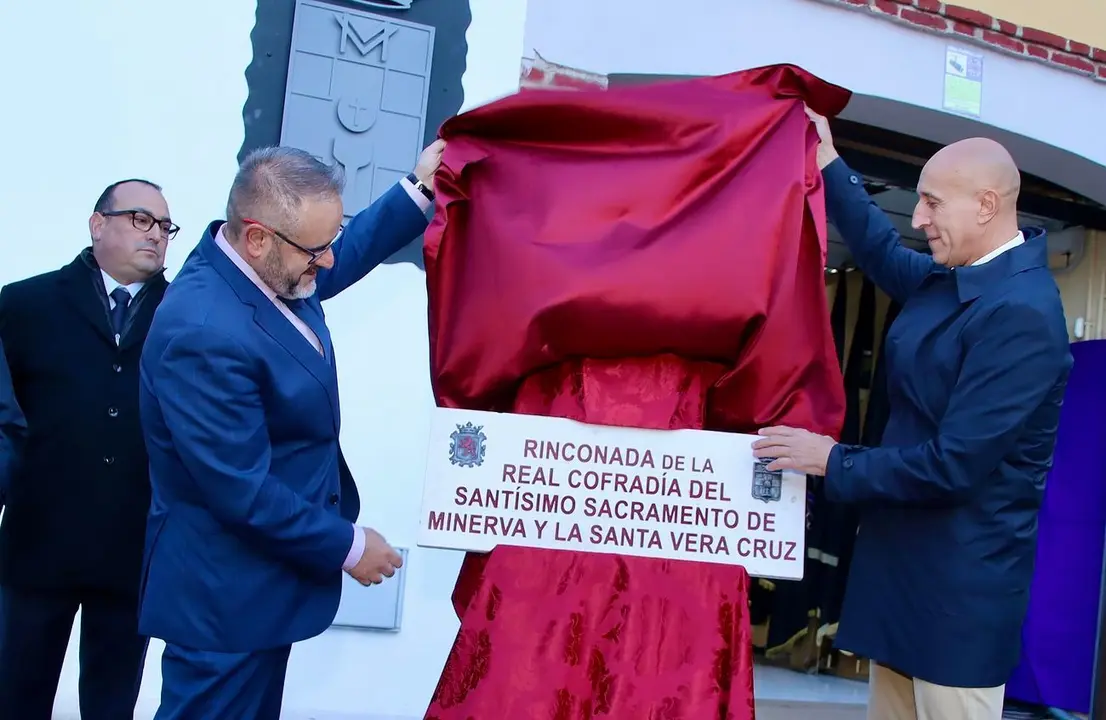 La Real Cofradía del Santísimo Sacramento de Minerva y la Santa Vera Cruz de León, fundada en 1612 y que cuenta con unos 1.800 hermanos, estrenó hoy la rinconada que el Ayuntamiento acordó bautizar con su nombre junto a la sede social de la entidad.