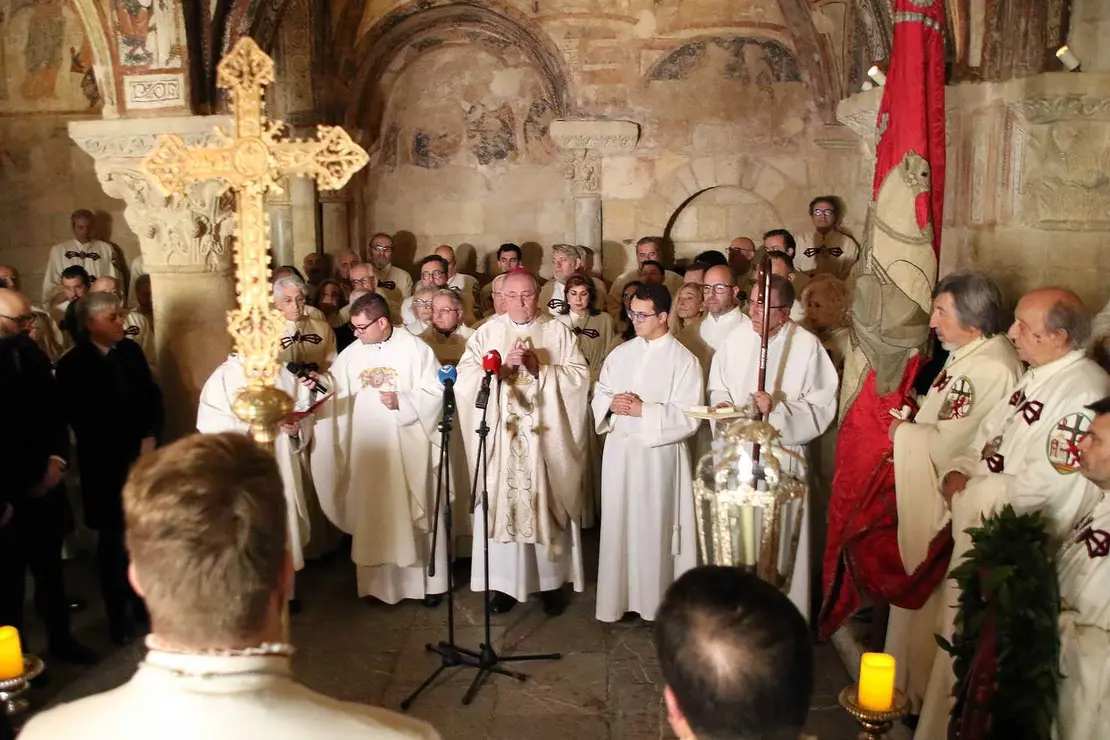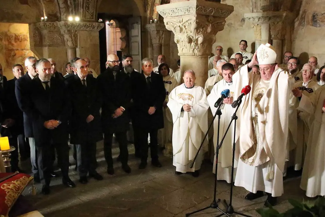 La ciudad de León cumplió este lunes, 6 de enero, día de la Epifanía del Señor, con la tradicional cita que acoge la Basílica de San Isidoro, en cuyo Panteón de los Reyes se reza el tradicional responso en memoria de los monarcas de León, precedido de una misa pontifical promovida por la Muy Ilustre, Real e Imperial Orden y Cofradía del Milagroso Pendón de San Isidoro junto con el Cabildo Isidoriano y presidida por el obispo de la Diócesis, Luis Ángel de las Heras.