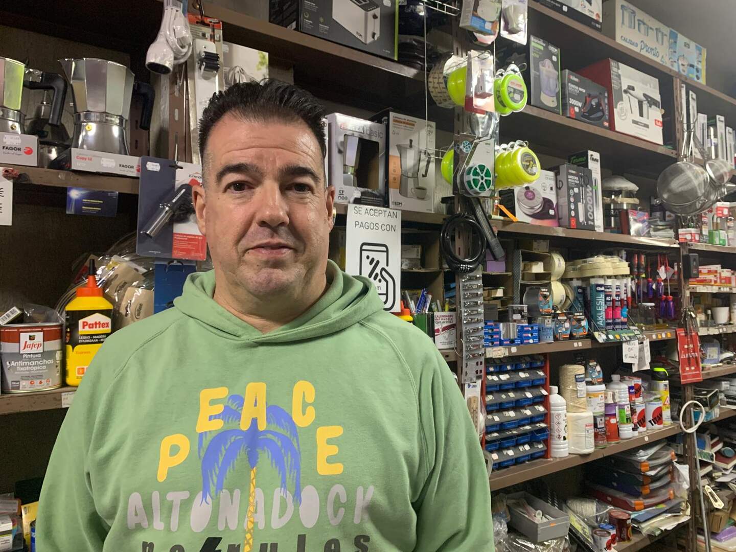 Rodríguez es, obviamente, defensor del pequeño comercio y, especialmente, de las tiendas de barrio. Es consciente de que existe una lucha desigual con las grandes superficies que proliferan en la ciudad pero afirma que los negocios de cercanía son los que "salvan la vida" de los vecinos. "Nosotros, por ejemplo, damos servicio a ese que necesita 20 tacos y 20 tornillos. Si va a comprarlos a una gran superficie, no va a poder comprarlo, va a tener que comprar cajas mucho más grandes, de más volumen, que no quieren para nada", significa.