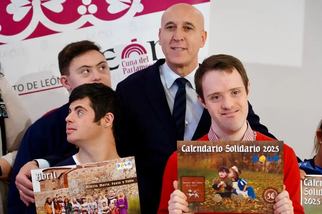 El alcalde de León, José Antonio Diez, presentó hoy el calendario acompañado por la presidenta de Amidown, Mamen Pardo, y trasladó su “el increíble trabajo y esfuerzo” de los usuarios, llevado a cabo “junto a las asociaciones y a las familias” para “demostrar que el Síndrome de Down es, en realidad, una capacidad especial”.